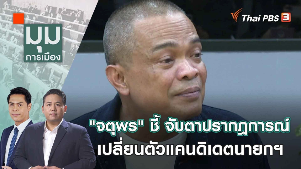 07:00มุมการเมือง"จตุพร" ชี้ จับตาปรากฎการณ์เปลี่ยนตัวแคนดิเดตนายกฯ | 21 ส.ค. 66พบกับประเด็น"จตุพร" ชี้ จับตาปรากฎการณ์เปลี่ยนตัวแคนดิเดตนายกฯดีลลับจัดรัฐบาล เคาะนายกฯ 22 ส.ค. 66ชมย้อนหลัง1 ชั่วโมง