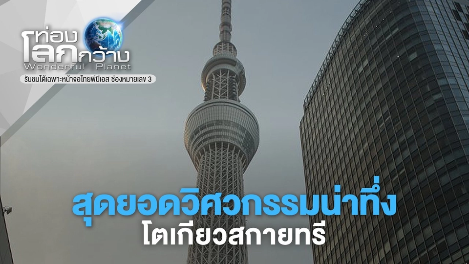 18:00ติดลิขสิทธิ์รับชมย้อนหลังไม่ได้ท่องโลกกว้างสุดยอดวิศวกรรมน่าทึ่ง ตอน โตเกียวสกายทรีโตเกียวสกายทรี ความสำเร็จด้านเทคโนโลยีและวิศวกรรมครั้งสำคัญ เมื่อสร้างเสร็จในปี 2012 สกายทรีสูง 634 เมตร เป็นหอคอยที่สูงที่สุดในประเทศ สูงเป็นอันดับ 2 ของโลก และเป็นหอกระจายสัญญาณเดี่ยวที่สูงที่สุดในโลก