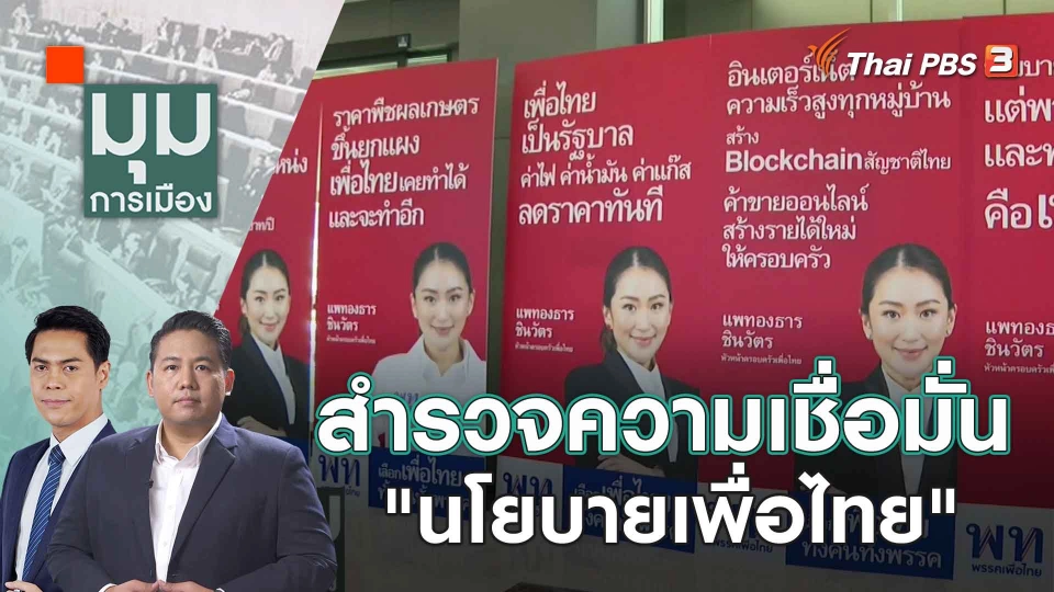 07:00มุมการเมืองสำรวจความเชื่อมั่น "นโยบายเพื่อไทย" | 4 ก.ย. 66พบกับประเด็นสำรวจความเชื่อมั่น "นโยบายเพื่อไทย"แบ่ง ครม. ใครคว้าพุงปลา?ชมย้อนหลัง1 ชั่วโมง