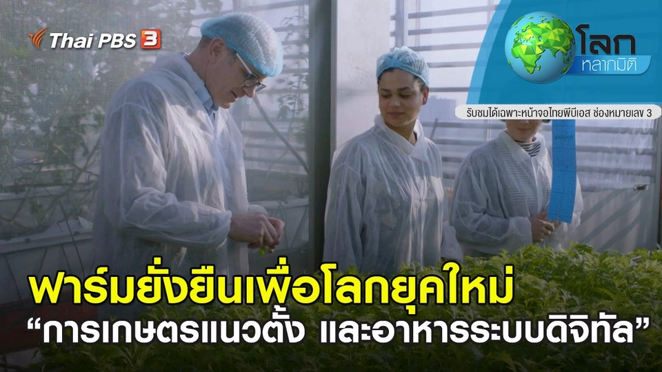 22:15ติดลิขสิทธิ์รับชมย้อนหลังไม่ได้โลกหลากมิติฟาร์มยั่งยืนเพื่อโลกยุคใหม่ ตอน การเกษตรแนวตั้ง และอาหารระบบดิจิทัลเมื่อเกษตรกรบนที่ดินเริ่มขาดแคลน การปลูกพืชอาหารในพื้นที่เมืองจึงเป็นทางออก และเทคโนโลยีดิจิทัลมีส่วนช่วยพัฒนาคุณภาพอาหารอย่างไร