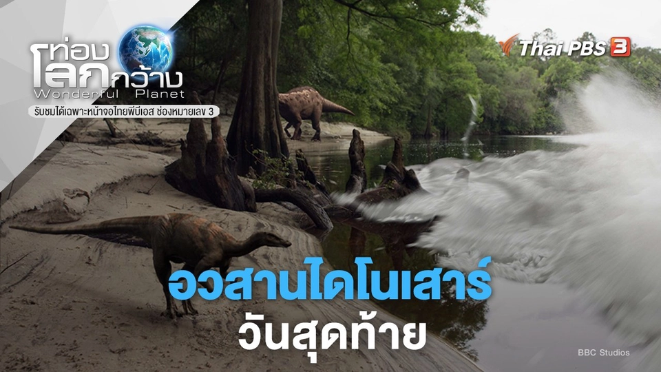 18:00ติดลิขสิทธิ์รับชมย้อนหลังไม่ได้ท่องโลกกว้างอวสานไดโนเสาร์ ตอน วันสุดท้ายแทนิส คือ แหล่งขุดค้นสำคัญที่พบฟอสซิลใหม่ ๆ หลายชนิด แต่จุดขุดค้นนี้ห่างจากจุดที่ดาวเคราะห์น้อยพุ่งชนถึง 3,000 กิโลเมตร เหตุใดและสิ่งใดที่ทำให้ไดโนเสาร์และสัตว์อื่น ๆ ในบริเวณนี้ล้มตายเป็นจำนวนมาก