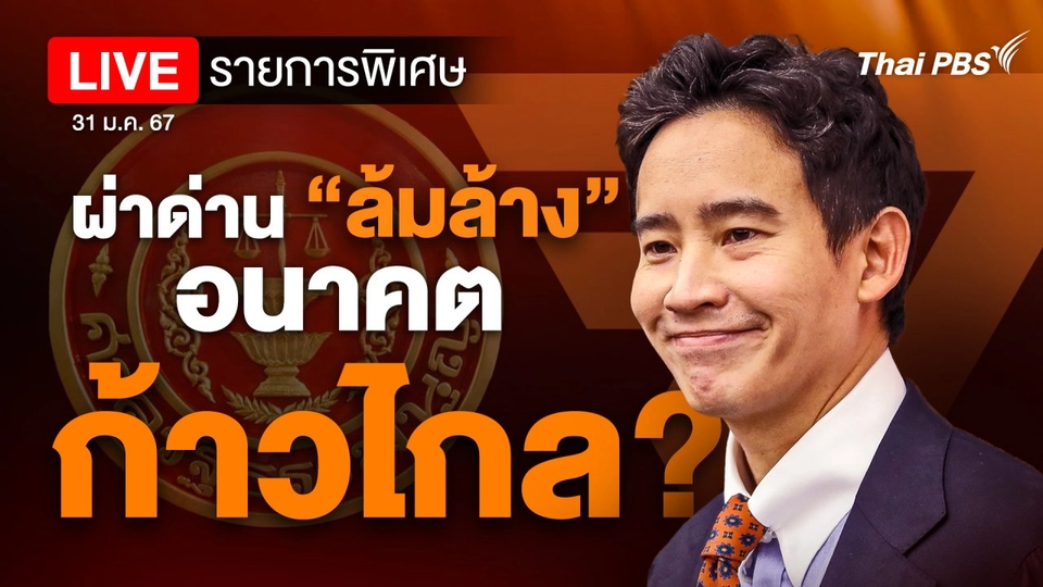 20:30ตอบโจทย์"พิธา - ก้าวไกล "เข้าข่ายล้มล้างการปกครอง" เสี่ยงยุบพรรค ?ร่วมสนทนาประเด็นคำวินิจฉัยศาลรัฐธรรมนูญ พรรคก้าวไกล - นายพิธา เข้าข่ายล้มล้างการปกครอง ปมหาเสียงด้วยข้อเสนอแก้มาตรา 112 ประเมินฉากทัศน์การเมืองนับจากนี้ชมย้อนหลัง30 นาที