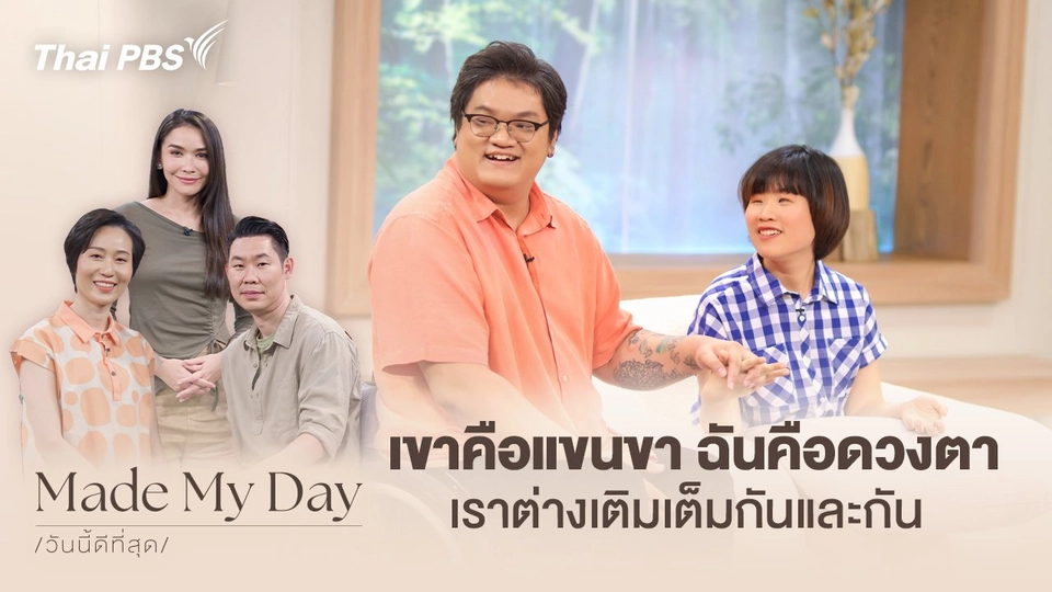 21:30Made My Day วันนี้ดีที่สุดเขาคือแขนขา ฉันคือดวงตา เราต่างเติมเต็มกันและกันความรักเป็นสิ่งสวยงาม เมื่อใดที่มีความรัก เมื่อนั้นย่อมเกิดสิ่งที่ดีงามเสมอ คุณเอก และคุณแอล คู่รักที่ไม่เคยรู้สึกว่าตัวเองขาดหาย เพราะต่างฝ่ายต่างเป็นเหมือนจิ๊กซอร์ที่ได้ปะติดปะต่อให้กันและกันชมย้อนหลัง30 นาที