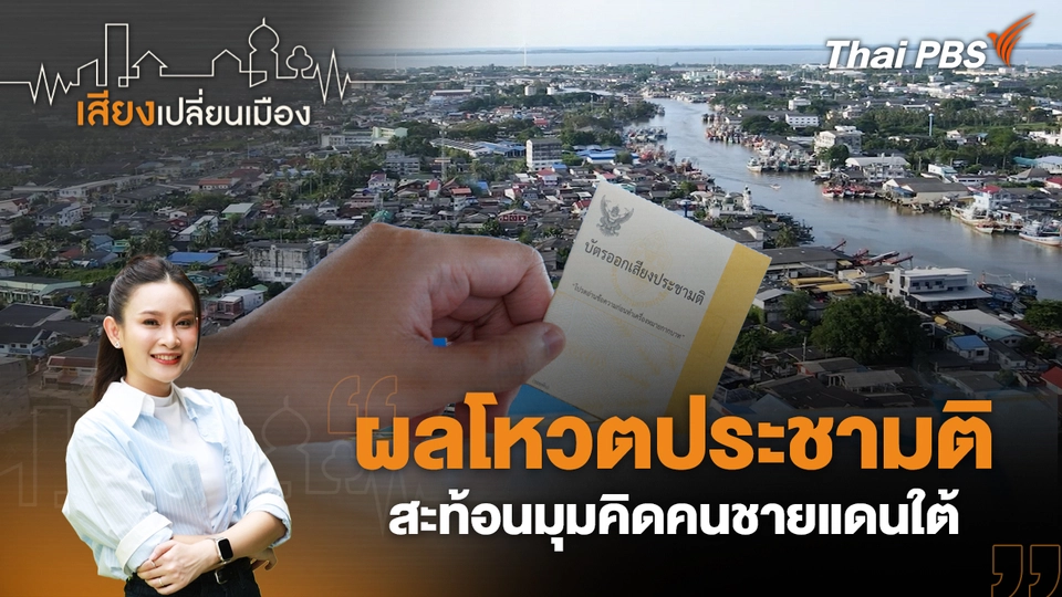 16:3015:00เสียงเปลี่ยนเมืองผลโหวตประชามติ สะท้อนมุมคิดคนชายแดนใต้ผลประชามติในพื้นที่สามจังหวัดชายแดนใต้ที่เสียงส่วนใหญ่โหวตเห็นชอบ ติด 10 อันดับสัดส่วนคะแนนโหวตเห็นชอบสูงสุดของประเทศ ชวนถอดรหัสเสียงสะท้อนจากพื้นที่ผ่านผลประชามติ ชมย้อนหลัง15 นาที