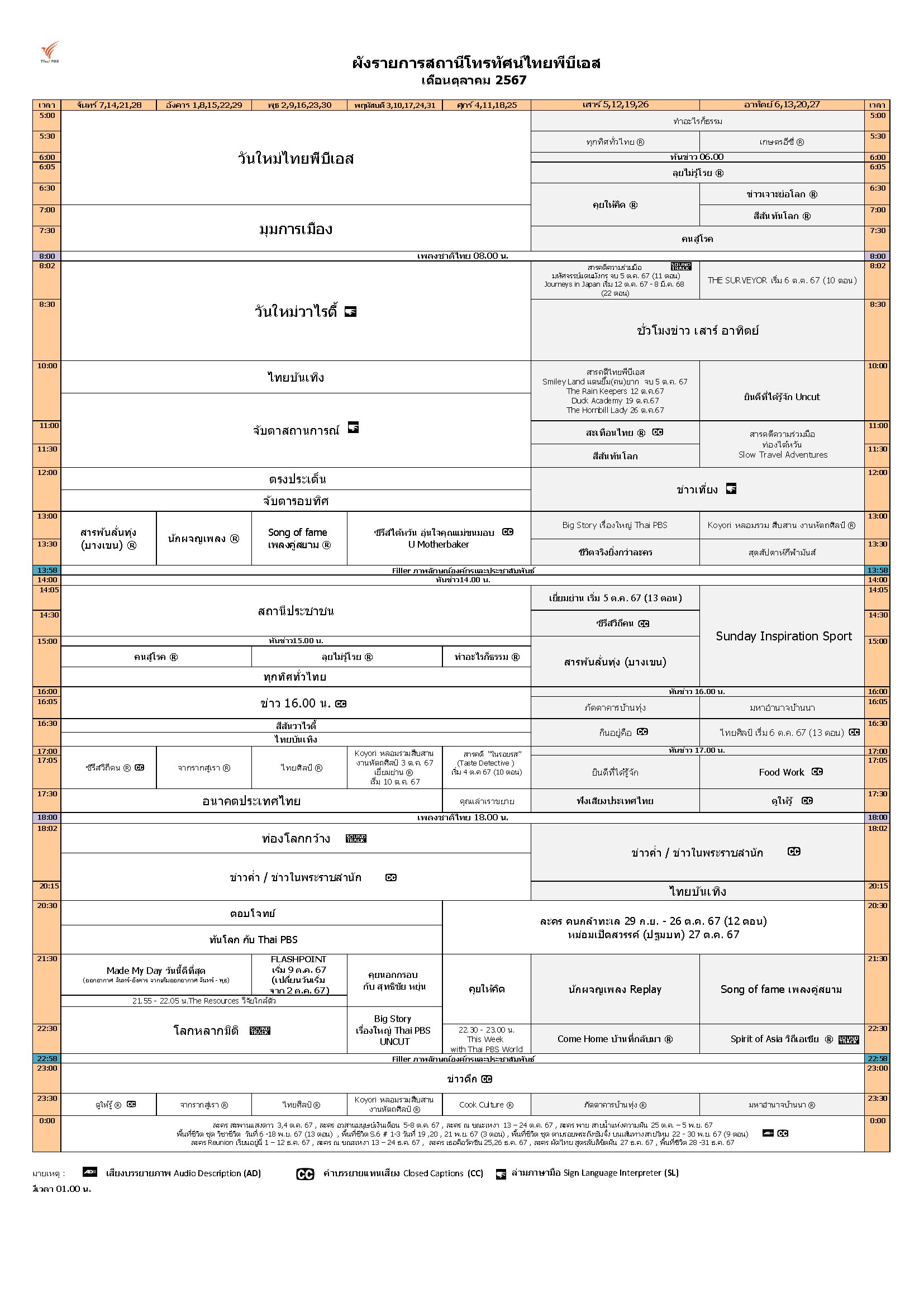 ดาวน์โหลดผังรายการเดือนตุลาคม 2567