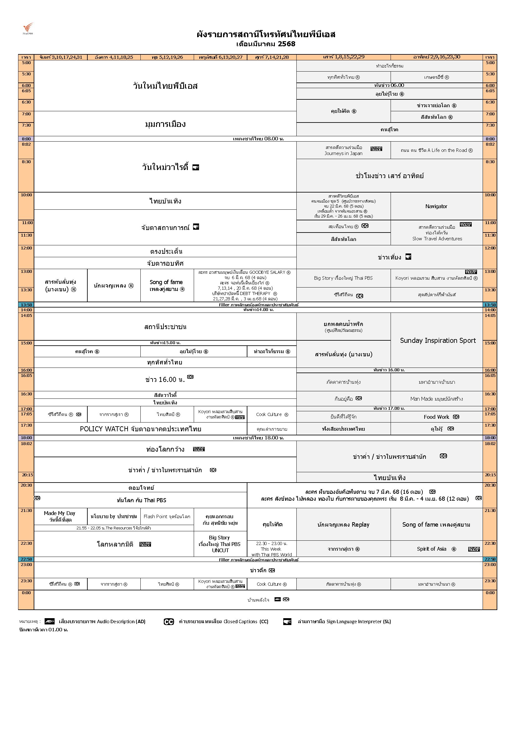 ดาวน์โหลดผังรายการเดือนมีนาคม 2568