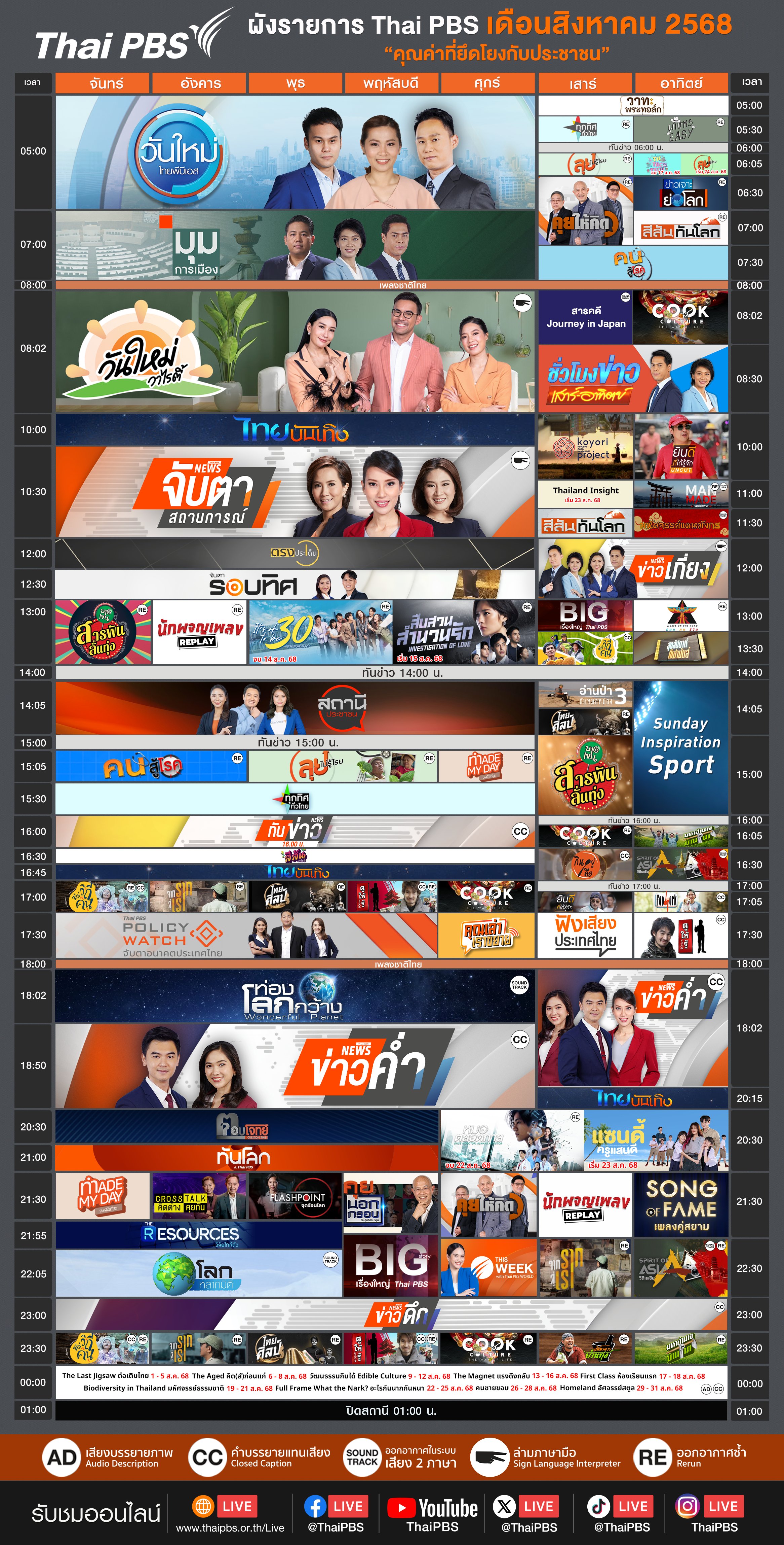 ดาวน์โหลดผังรายการเดือนสิงหาคม 2568