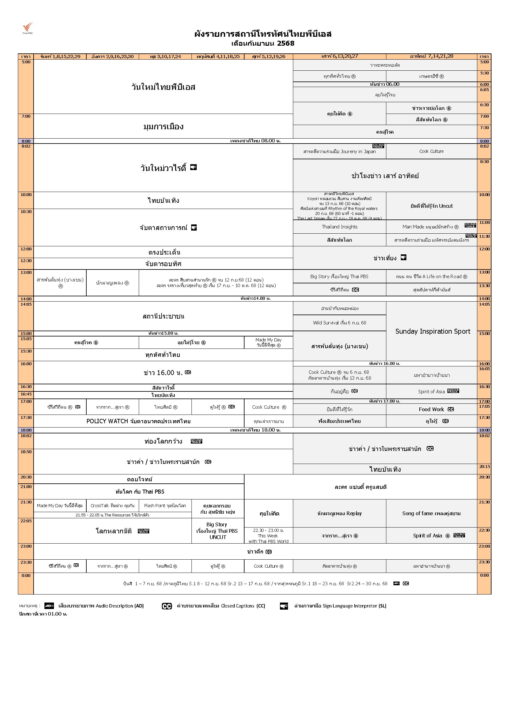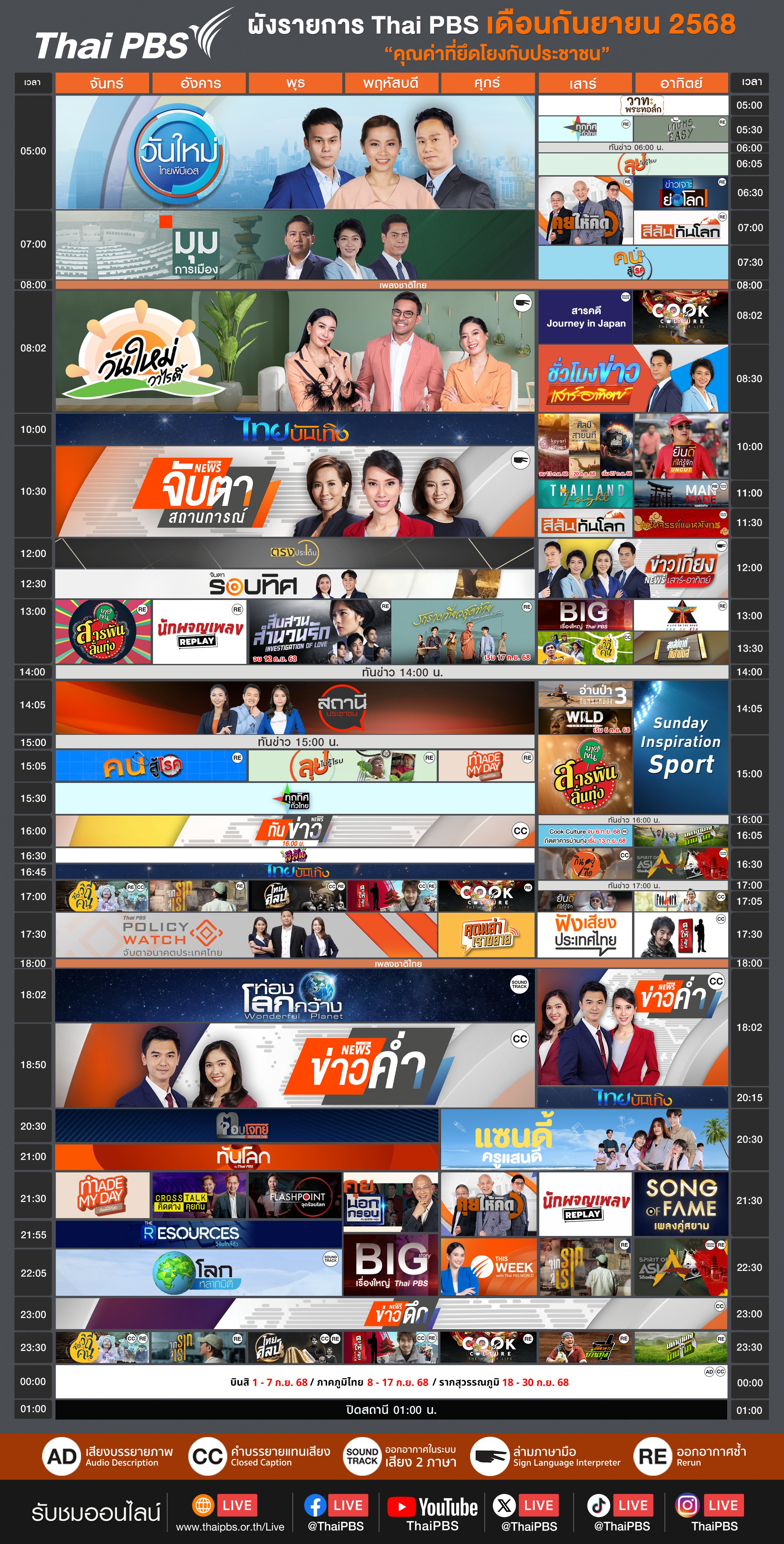 ดาวน์โหลดผังรายการเดือนกันยายน 2568