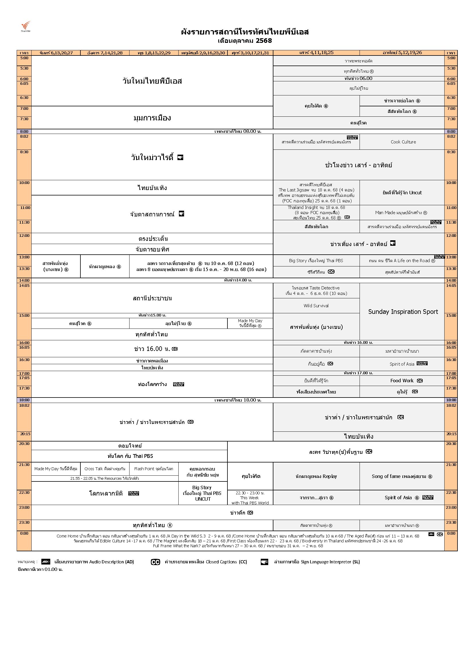ดาวน์โหลดผังรายการเดือนตุลาคม 2568