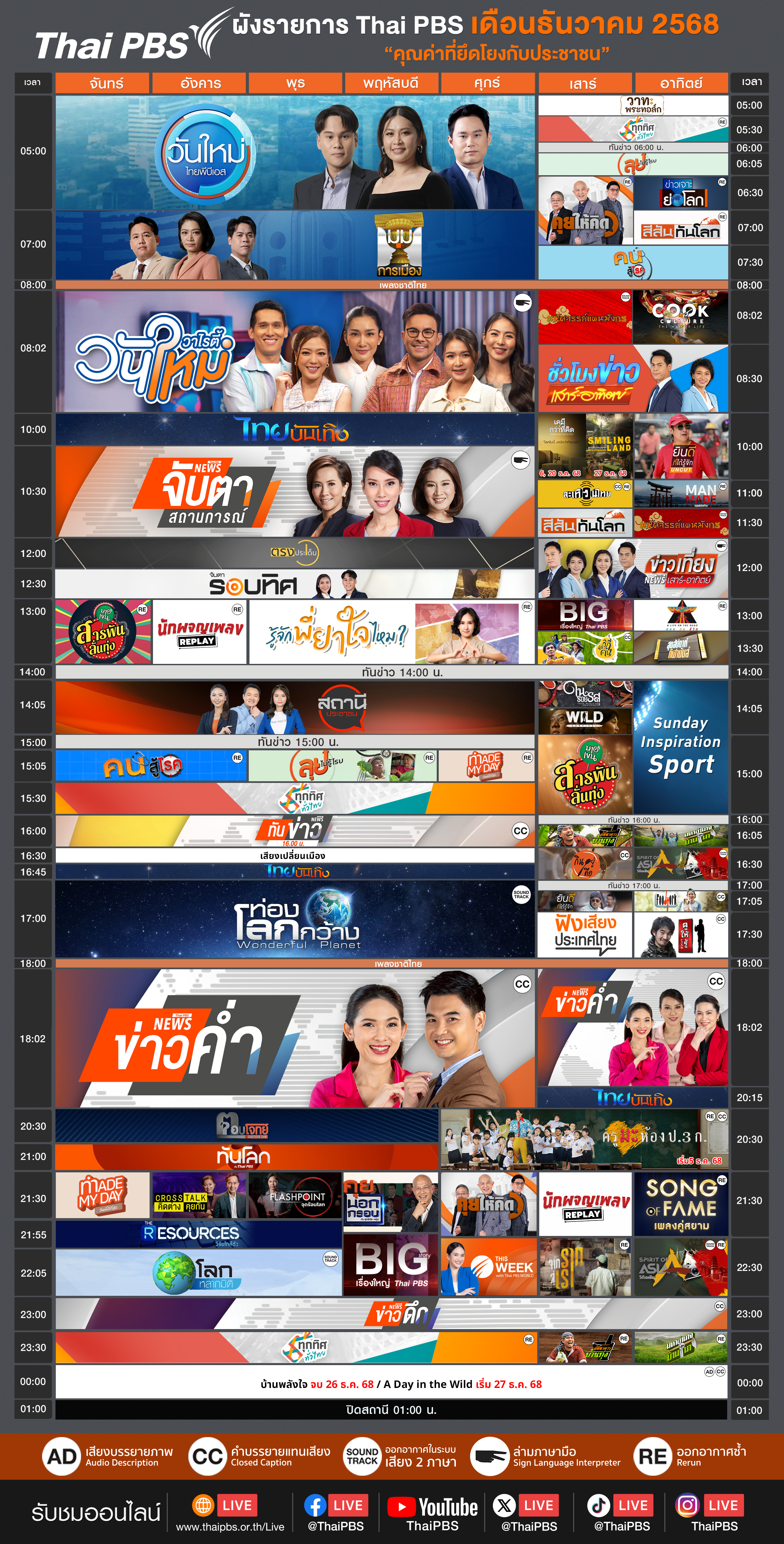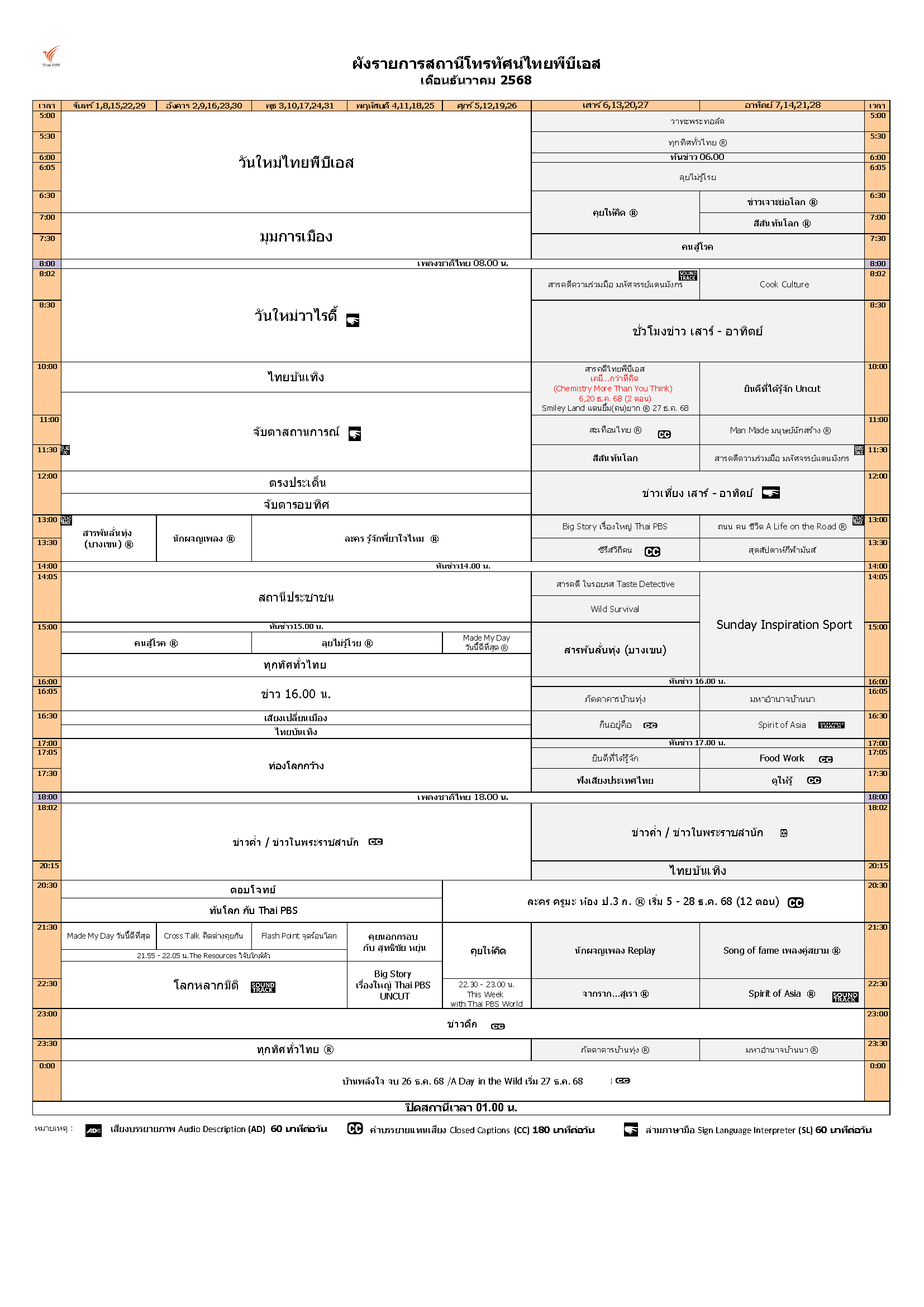 ดาวน์โหลดผังรายการเดือนธันวาคม 2568
