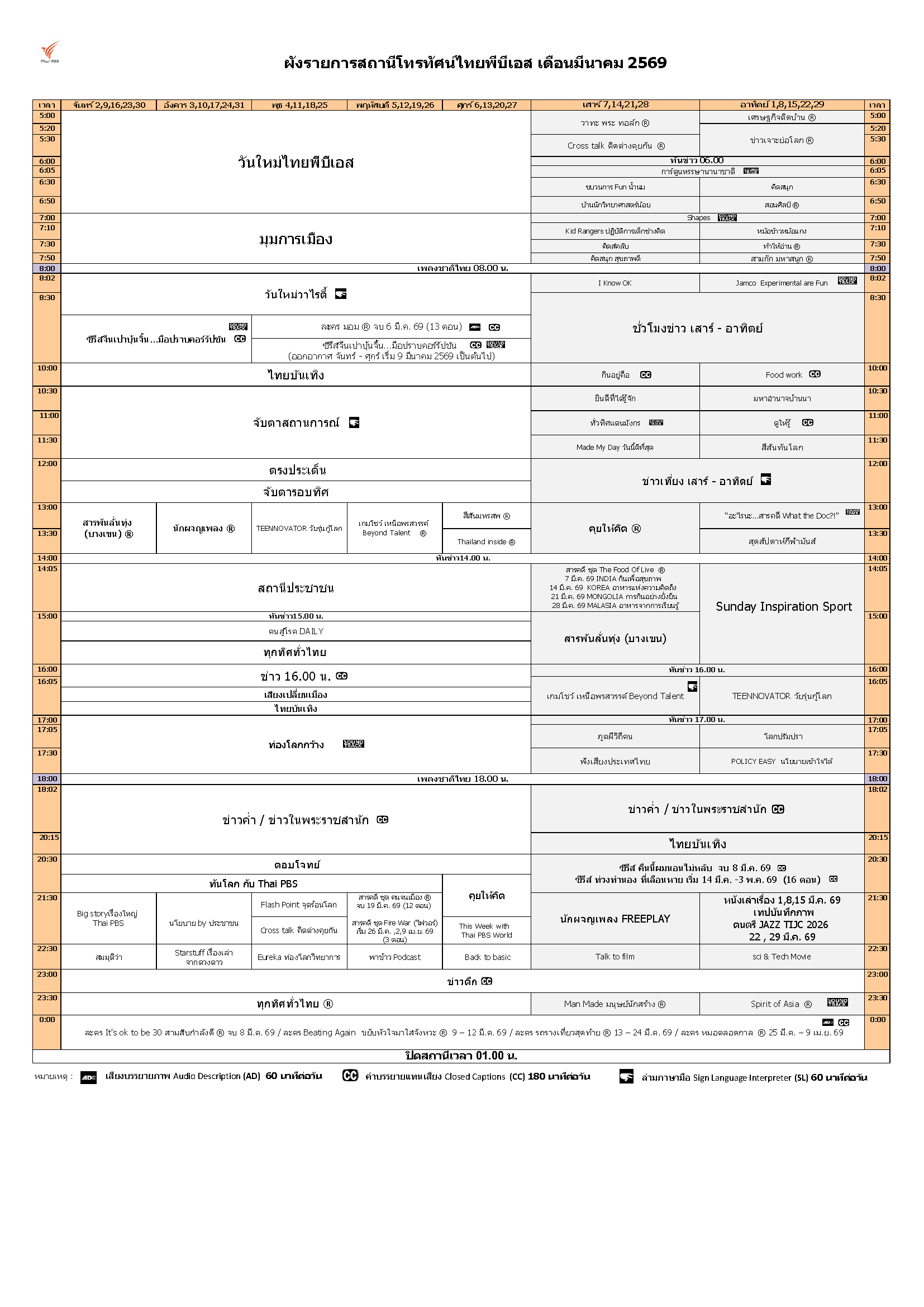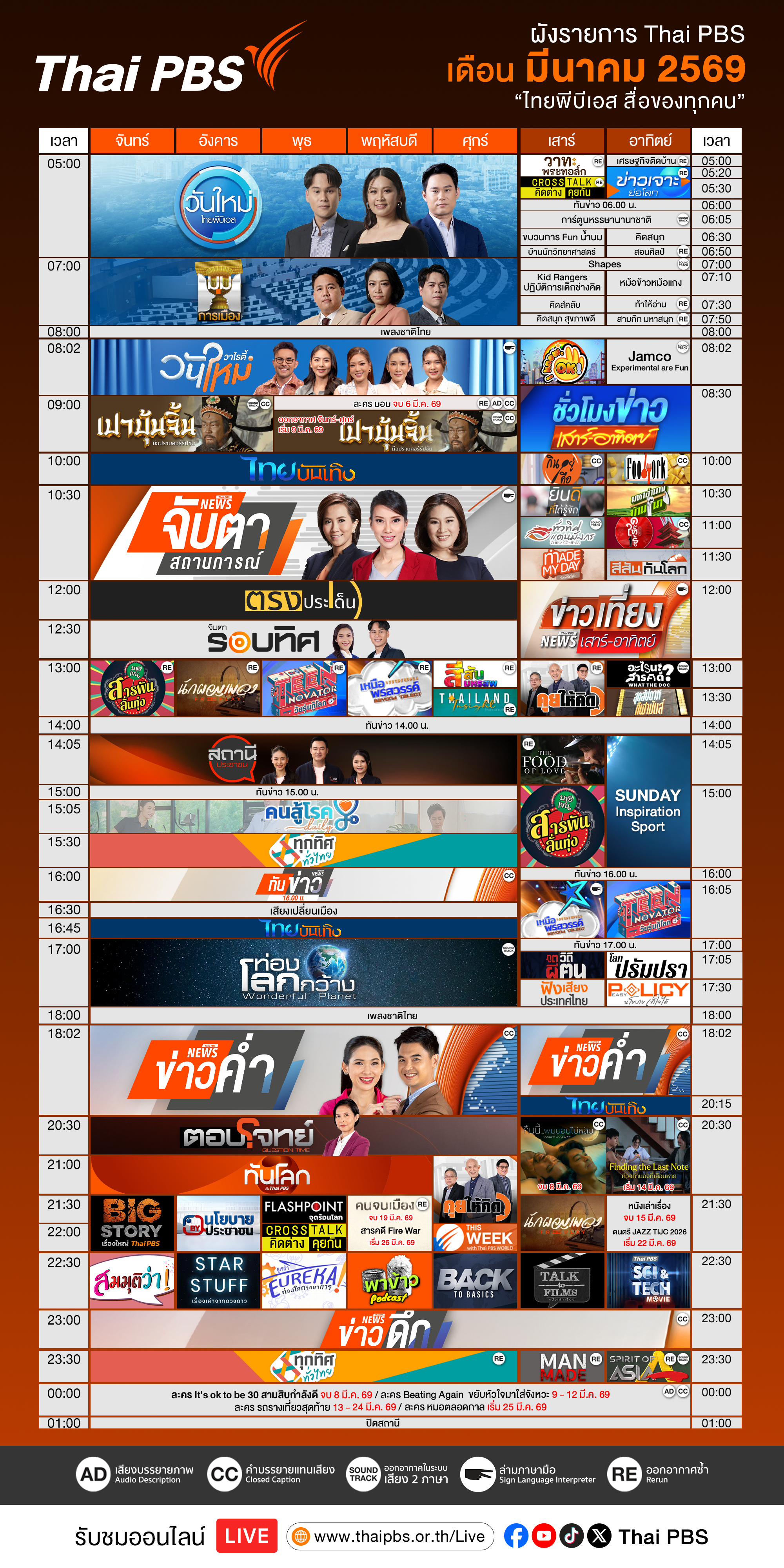 ดาวน์โหลดผังรายการเดือนมีนาคม 2569