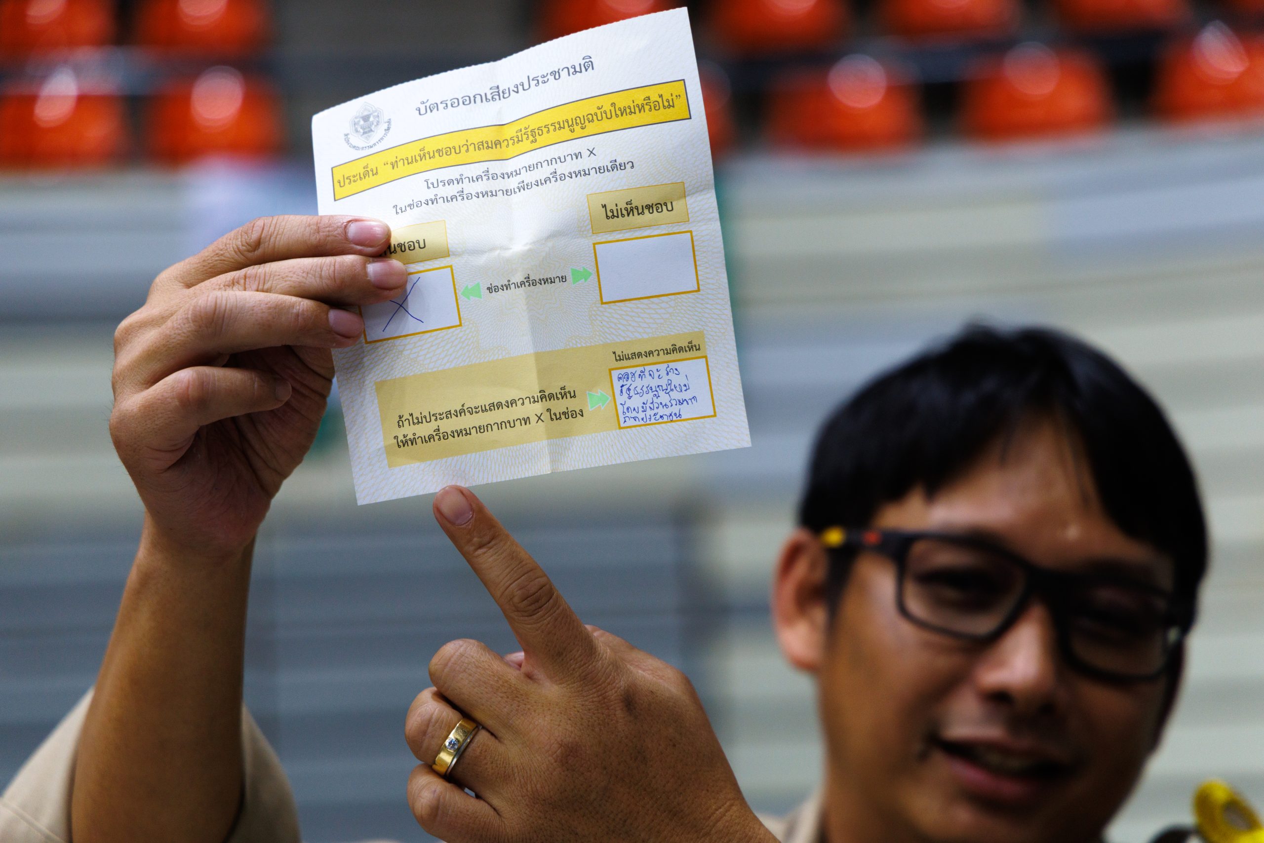 8 ก.พ. 69 ภายหลังปิดหีบที่อาคารกีฬาเวสน์ 2 ดินแดง เจ้าหน้าที่เริ่มนับคะแนนเลือกตั้งและประชามติ โดยช่วงแรกพบคะแนน “เห็นชอบ” สูงกว่า “ไม่เห็นชอบ”