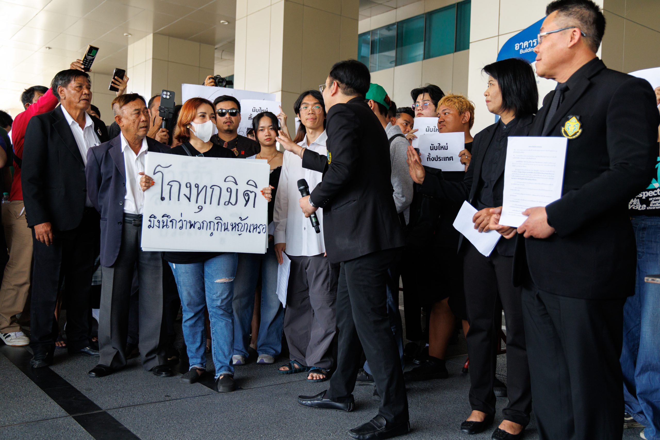 11 ก.พ. 69 กลุ่มแนวร่วมธรรมศาสตร์และการชุมนุม พร้อมประชาชนราว 20 คน ยื่น 5 ข้อเรียกร้องต่อ กกต. ที่ศูนย์ราชการแจ้งวัฒนะ ขอให้นับคะแนนใหม่ เปิดเผยข้อมูล สอบสวนเจ้าหน้าที่ และให้ กกต. ลาออก ท่ามกลางการดูแลของเจ้าหน้าที่