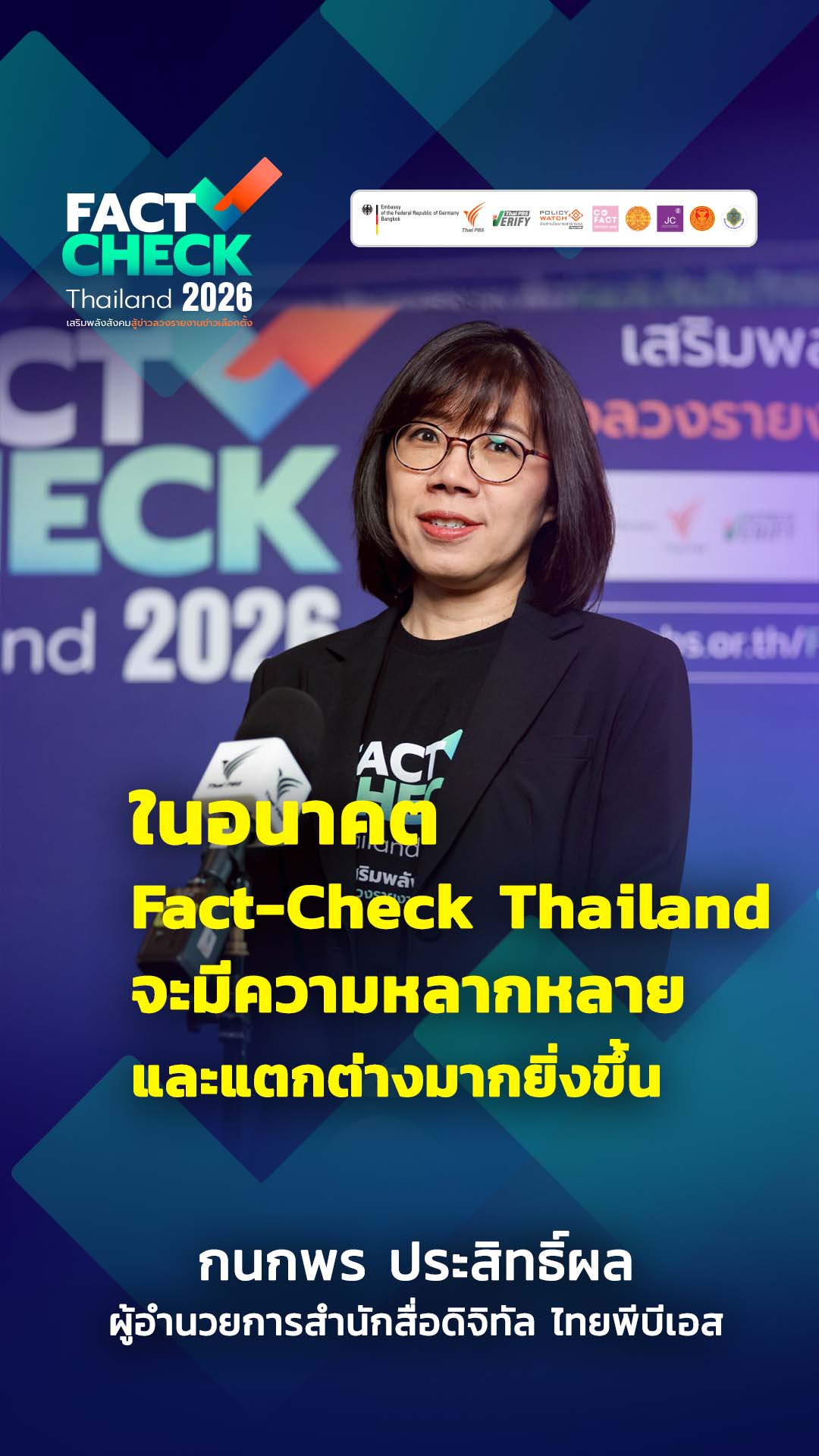 ประกาศผลเป็นที่เรียบร้อยแล้ว สำหรับรางวัล Fact-Check Thailand Award 2026 เวทีเชิดชูผลงานตรวจสอบข้อเท็จจริงที่เปี่ยมด้วยคุณภาพ รวมทั้งสิ้น 7 รางวัล จากผลงานกว่า 50 ชิ้น ที่ส่งเข้าประกวด จากผู้ผ่านการอบรม Fact-Check Thailand 2026 โครงการอบรมเชิงปฏิบัติการเพื่อพัฒนานักตรวจสอบข้อเท็จจริง และสร้างระบบนิเวศข่าวสารที่น่าเชื่อถือให้กับสังคมไทย ซึ่งจัดขึ้นภายใต้ความร่วมมือของ 4 องค์กรหลักที่เห็นความสำคัญของข้อมูลที่ถูกต้องในสังคมประชาธิปไตย ได้แก่ สถานเอกอัครราชทูตเยอรมนีประจำประเทศไทย มหาวิทยาลัยธรรมศาสตร์ ไทยพีบีเอส และ Cofact Thailand