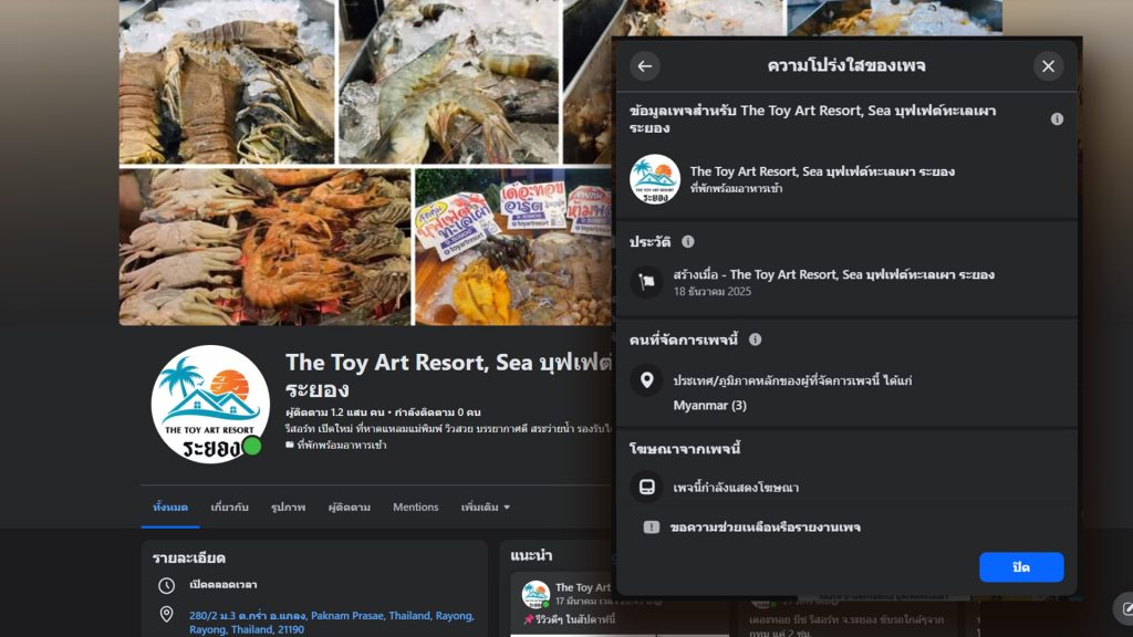 เช่น กรณีที่พักแห่งหนึ่งใน จ.ระยอง ที่เมื่อมีการตรวจสอบแล้วพบว่า เพจดังกล่าว เพิ่งถูกสร้างขึ้นมาตั้งแต่วันที่ 18 ธันวาคม 2568 แต่ภูมิภาคหลักของผู้ดูแลเพจอยู่ที่ประเทศเมียนมาร์จำนวน 3 บัญชี และมีประวัติการหลอกลวง ในกลุ่มเตือนภัยการจองที่พักออนไลน์เช่นกัน