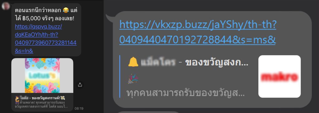 - หลอกให้แชร์ต่อ: บ่อยครั้งที่คุณจะถูกขอให้แชร์ข้อความนี้ไปให้เพื่อน ๆ อีก 10-20 คน เพื่อที่จะได้รับเงินรางวัล ซึ่งเป็นการช่วยมิจฉาชีพขยายวงกว้างในการหลอกลวงผู้อื่น