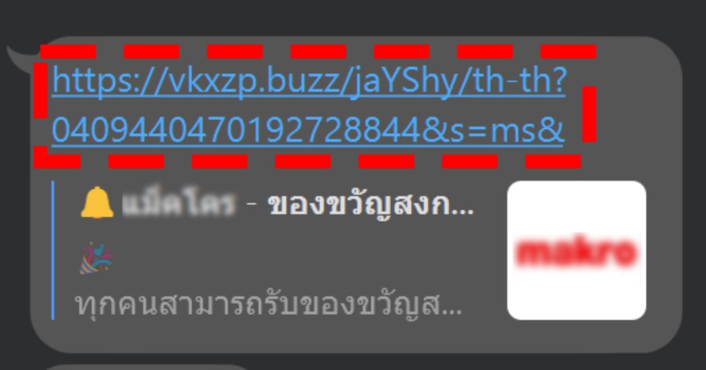 นี่คือจุดที่สำคัญที่สุด ให้สังเกตที่ URL ของลิงก์ที่แนบมา (เช่น hqerf.buzz) ลิงก์เหล่านี้มักจะเป็นชื่อแปลก ๆ ที่ไม่มีความเกี่ยวข้องกับห้างสรรพสินค้าหรือแบรนด์ที่แอบอ้างเลยแม้แต่น้อย โดยห้างดังส่วนใหญ่จะใช้ชื่อแบรนด์ของตนเองเป็นชื่อโดเมนหลัก