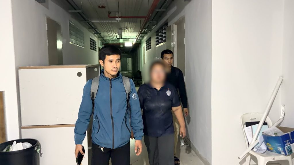 ภาพขณะควบคุมตัว น.ส.ศศิธร หรือ “ฝน” อายุ 36 ปี ผู้ต้องหาแอบอ้างเป็นเจ้าหน้าที่ตำรวจ