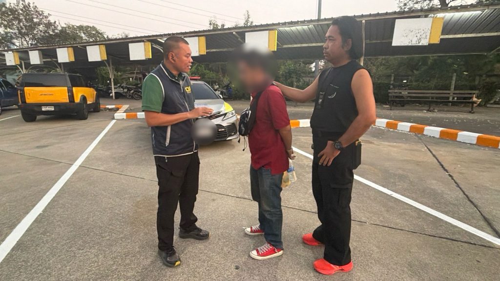 ภาพขณะเจ้าหน้าที่ตำรวจ CIB เข้าจับกุมนายธนากรฯ อายุ 41 ปี ผู้ต้องหา