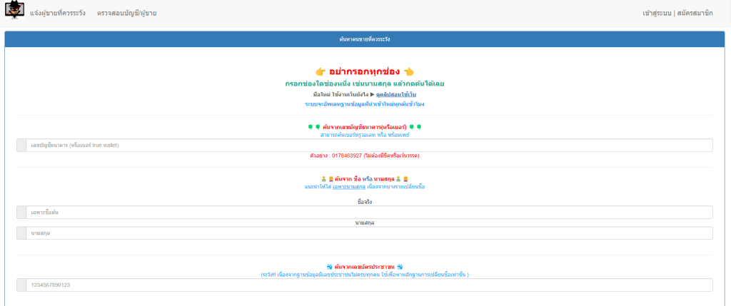ในหน้าหลัก จะมีช่องให้คุณกรอกข้อมูลเพื่อค้นหา เช่น