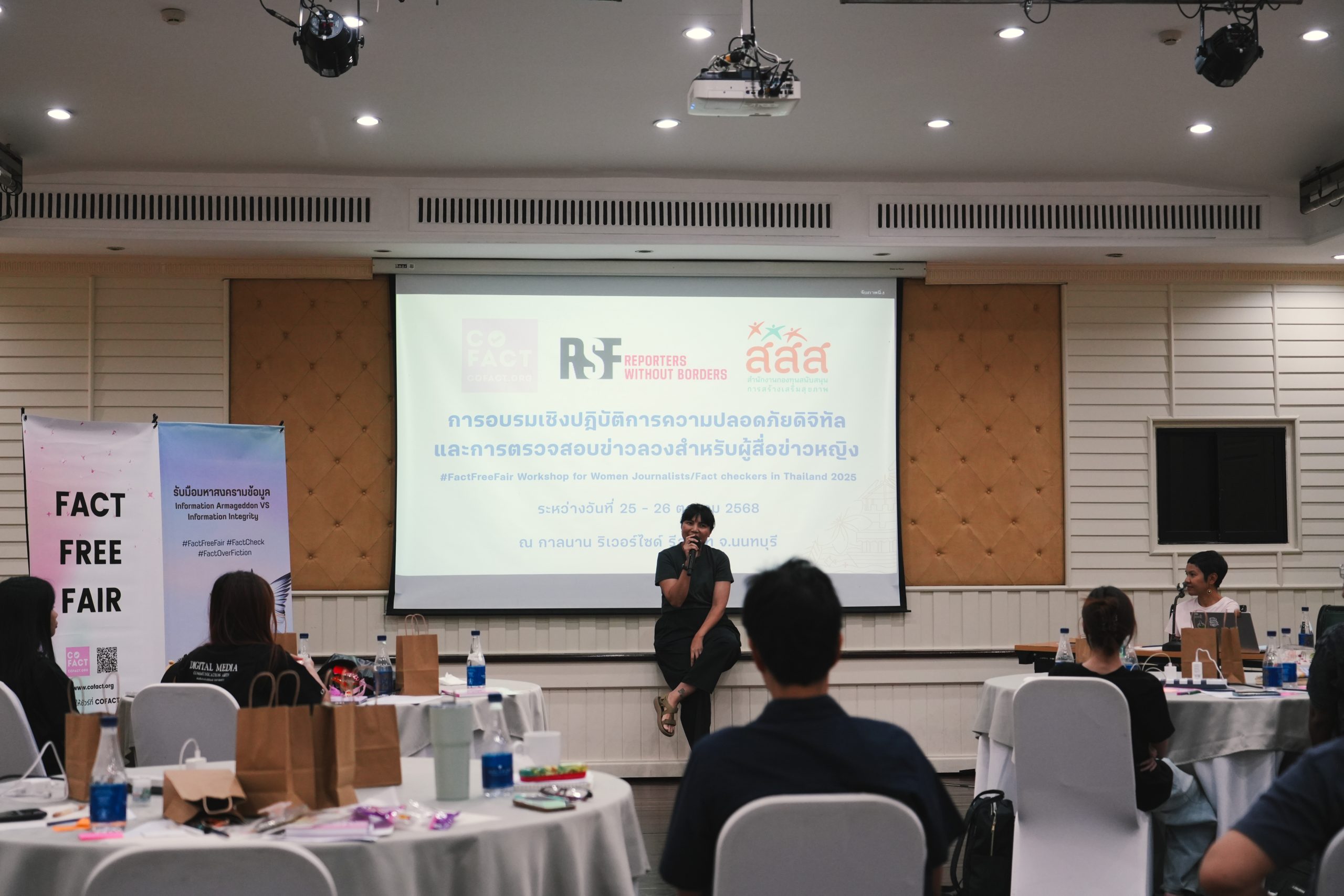 “Fact-Checker ต้องมีทั้งความรู้ ความเข้าใจในกฎหมาย ความปลอดภัยทางดิจิทัล และความชำนาญในการใช้เครื่องมือตรวจสอบข้อมูล บางมุมอาจต้องละเอียดและเข้มงวดกว่านักข่าวทั่วไป เพราะต้องอธิบายได้ว่าข้อมูลใด ไม่จริงและทำไมจึงไม่จริง งานตรวจสอบข่าวจึงเป็นงานหนัก ที่ใช้เวลาอยู่หน้าคอมพิวเตอร์และมือถือเป็นเวลานาน ซึ่งอาจก่อให้เกิดความเหนื่อยล้า ดังนั้น การอบรมครั้งนี้จึงออกแบบให้เป็นทั้งพื้นที่ เรียนรู้และพักใจ เพื่อให้นักข่าวหญิงได้แลกเปลี่ยนประสบการณ์กัน ผ่อนคลาย และกลับไปทำงานด้วยพลังใหม่อีกครั้ง”