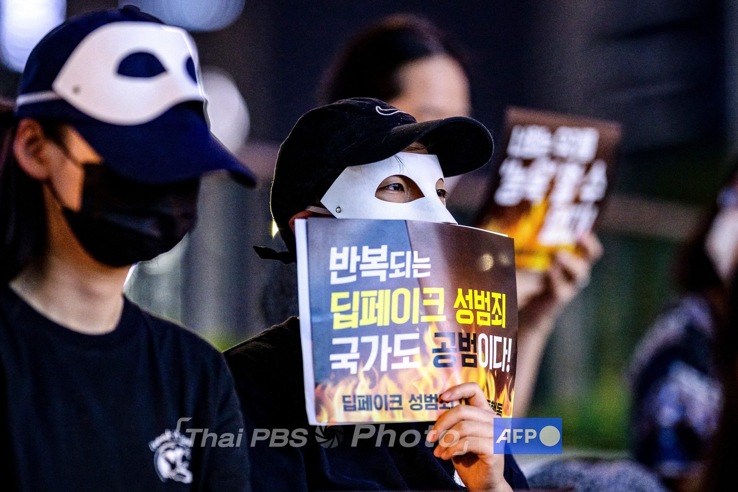 [แฟ้มภาพ] วันที่ 30 ส.ค. 2024 ภาพการประท้วงต่อต้านสื่ออนาจารแบบ Deepfake ในกรุงโซล หลังจากมีรายงานข่าวว่ามีการแชร์ภาพลามกของเยาวชนในห้องแชต Telegram (ภาพโดย Anthony WALLACE / AFP)