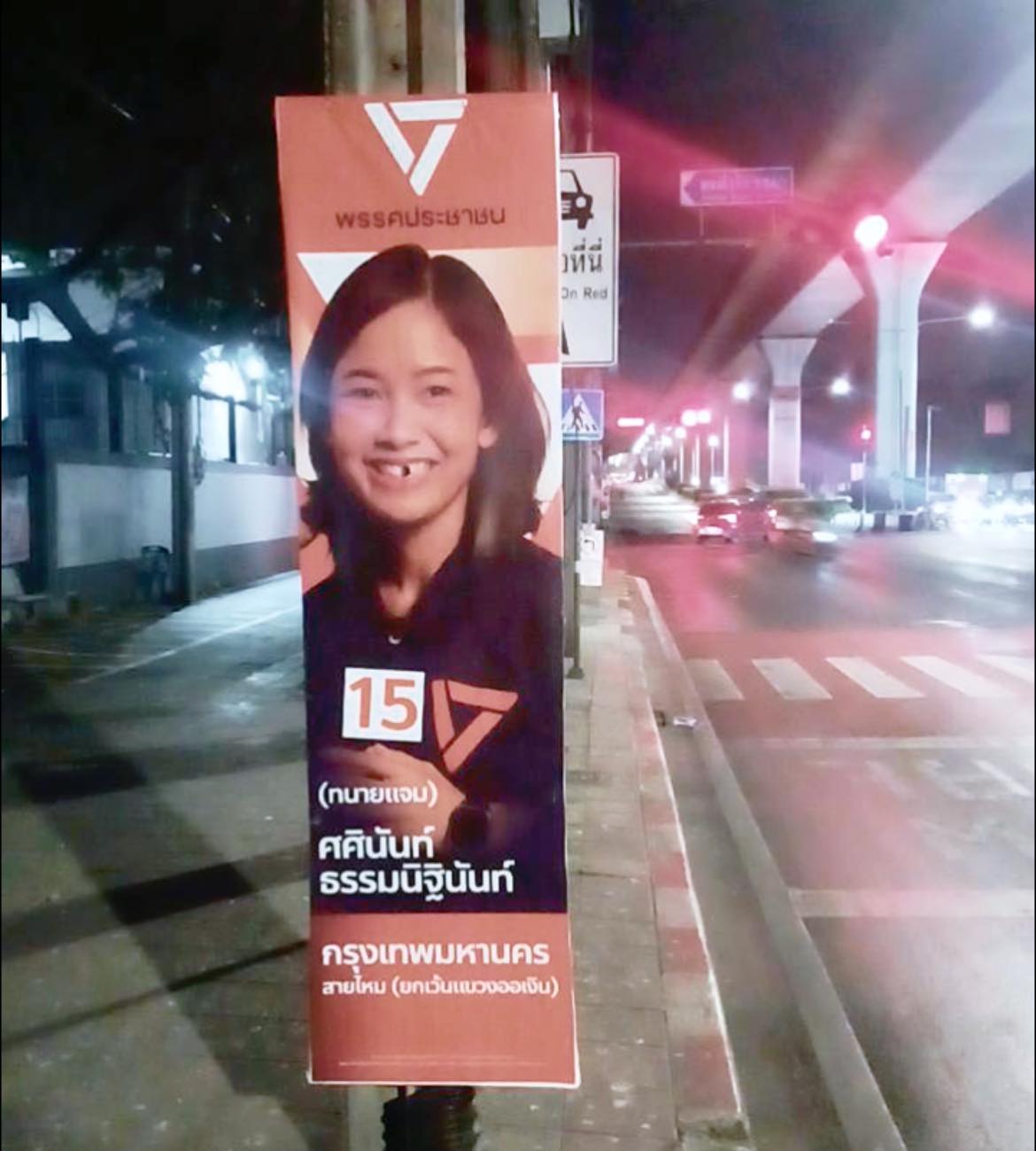 และกล่าวว่าโดยปกติป้ายหาเสียง คือ ป้ายที่ได้รับอนุญาตให้ติดตั้งในช่วงการเลือกตั้งตามกฎหมาย จึงสามารถติดตั้งได้ตามพื้นที่ที่กำหนด เช่น ข้างทางหรือจุดที่กฎหมายอนุญาต