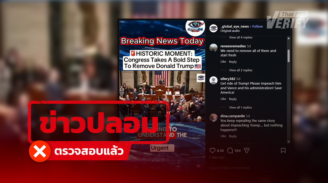 รัฐสภาสหรัฐฯ จ่อปลดทรัมป์จากตำแหน่ง ยอดวิวกว่า 3 แสน ที่แท้ข่าวปลอม