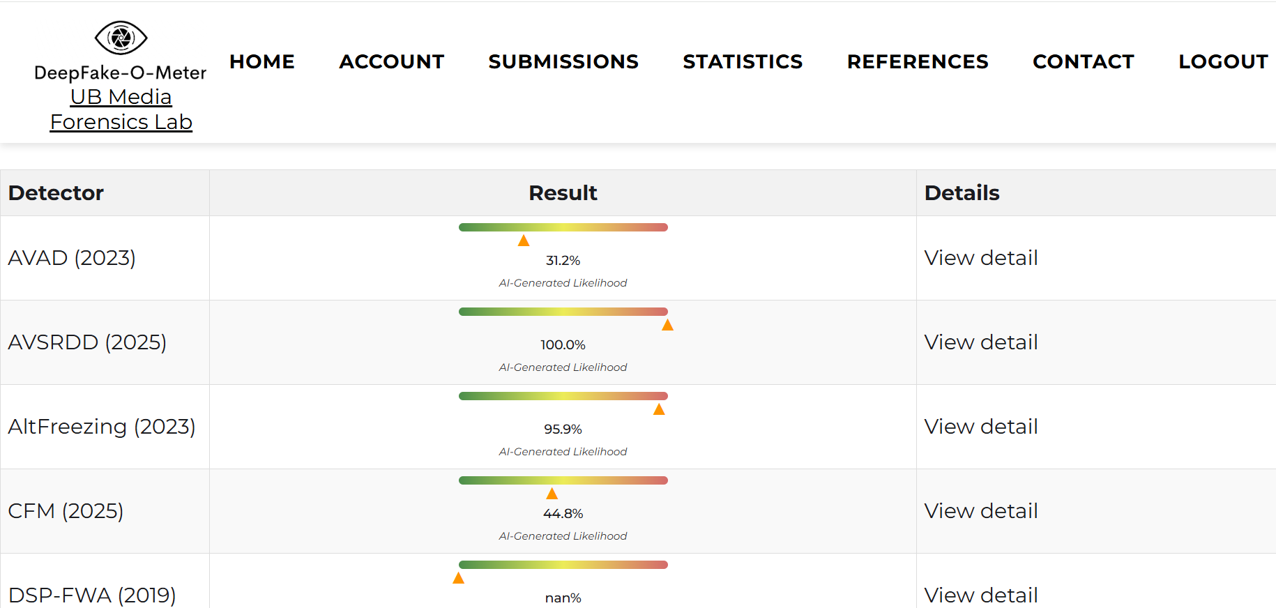 เมื่อนำคลิปวิดีโอดังกล่าวมาตรวจสอบในเว็บไซต์ DEEPFAKE-O-METER โปรแกรมตรวจสอบ AI พบว่า คลิปดังกล่าวมีแนวโน้มสูงที่จะสร้างจาก AI