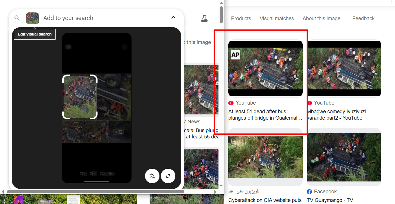 กรณีที่มีผู้ใช้ Facebook รายหนึ่งโพสต์อ้างว่า เกิดอุบัติเหตุรถบัสของไทยตกเหวลึก 50 เมตร มีผู้เสียชีวิต 36 คน และบาดเจ็บเกือบ 30 คน พร้อมแชร์ภาพเหตุการณ์และระบุวันที่ 6 ต.ค. 68 ตรวจสอบแล้วโดยนำภาพจากโพสต์ดังกล่าวค้นหาด้วย Google Lens พบว่าภาพตรงกับรายงานข่าวของสำนักข่าวต่างประเทศหลายแห่ง เช่น AP, Al Jazeera, CNN, Reuters และ BBC ซึ่งเผยแพร่เมื่อวันที่ 10–11 ก.พ. 68 ระบุว่าเป็นเหตุการณ์ รถโดยสารสาธารณะตกสะพานที่ประเทศกัวเตมาลา ดังนั้นภาพที่เผยแพร่เป็นเหตุการณ์เก่าจากต่างประเทศ ไม่เกี่ยวข้องกับประเทศไทย