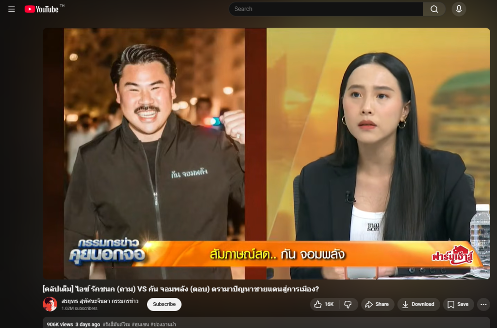 ภาพบันทึกหน้าจอแสดงภาพรายการกรรมกรข่าวคุยนอกจอ ซึ่งเป็นช่วงการพูดคุยของ “กัน จอมพลัง” กับ “ไอซ์ รักชนก” เมื่อวันที่ 20 ต.ค. 68