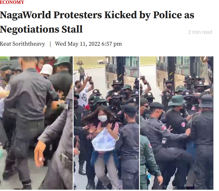 สื่อภาษาอังกฤษของกัมพูชาระบุว่าเป็นเหตุการณ์เจ้าหน้าที่ตำรวจใช้ความรุนแรงกับผู้ชุมนุมซึ่งเป็นอดีตพนักงานที่ถูกเลิกจ้างจากคาสิโน NagaWorld ในประเทศกัมพูชา เมื่อปี 2022