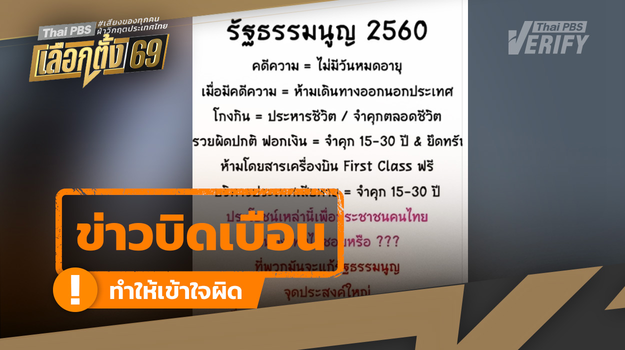 ตรวจสอบพบ: ข้อความบิดเบือนเกี่ยวกับเนื้อหาและการแก้ไขรัฐธรรมนูญ 60
