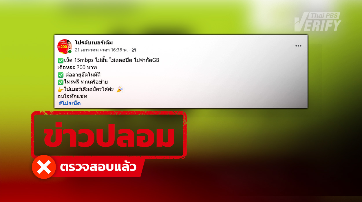 หลอกสมัครโปรเน็ตฯ 15 mbps ไม่อั้น แค่ 200 บาท แท้จริงเป็นเพจปลอมลวงโอนเงิน