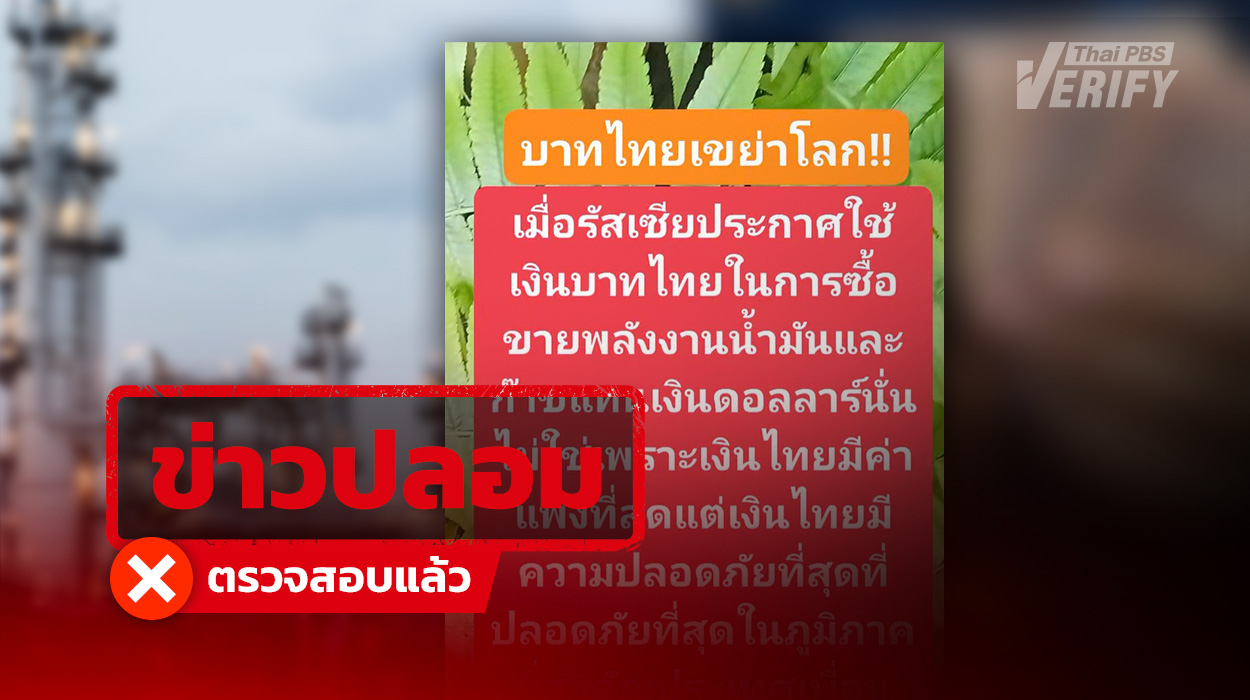 อ้าง “รัสเซีย” หันใช้ “เงินบาท” ซื้อ-ขายน้ำมัน