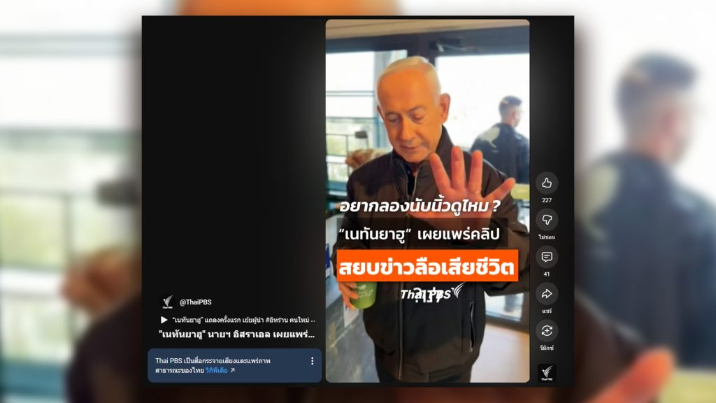 Thai PBS Verify recently flagged a post by X user ‘Israeli Titan’ from March 14, 2026. The post features a photo of Israeli Prime Minister Benjamin Netanyahu shaking hands with three female soldiers, claiming it was proof he was visiting a secret bunker.