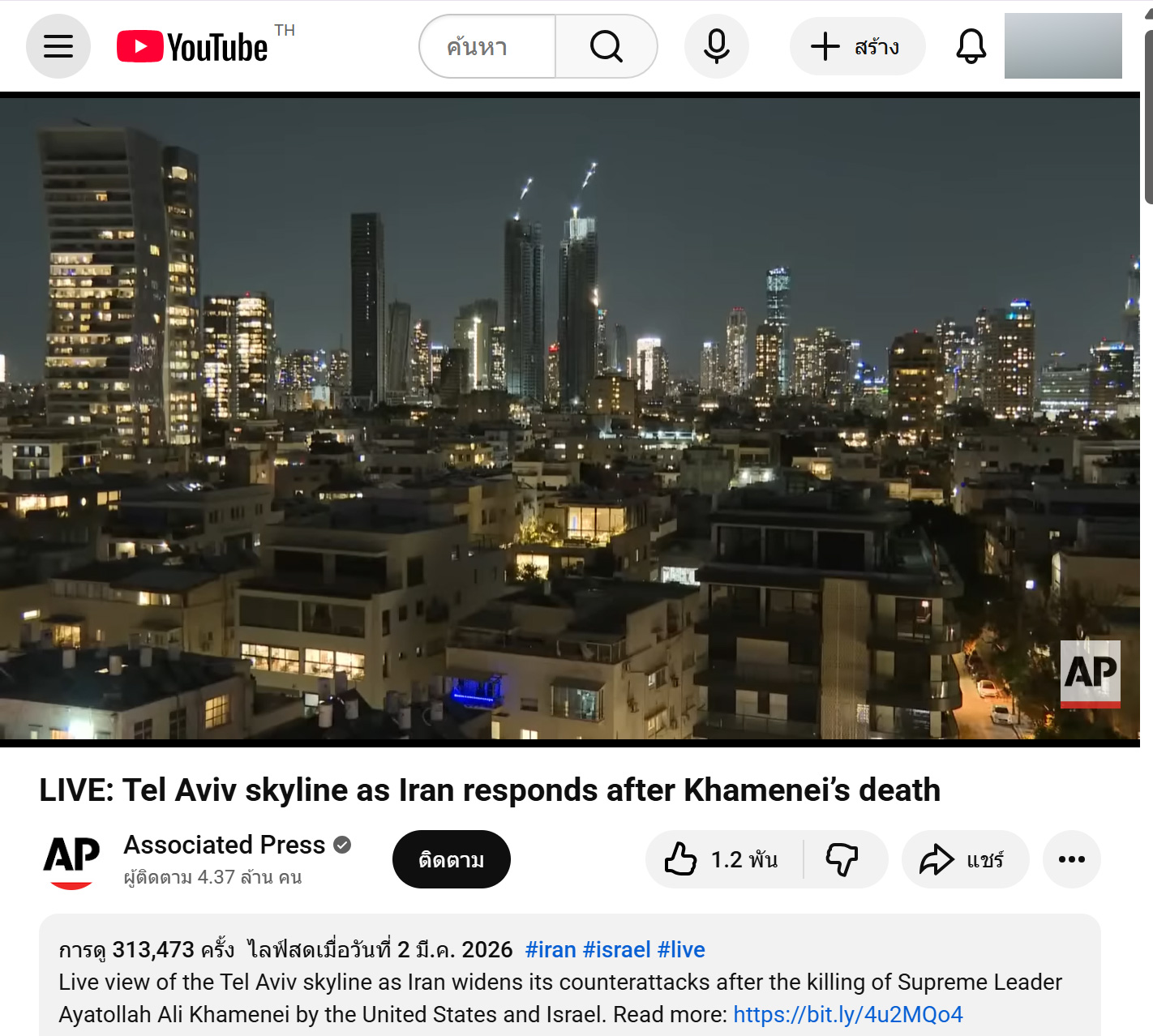 Thai PBS Verify also researched live footage from AP, from March 2, 2026. While the footage confirms real tension and missile activity, the scale of the damage was not as devastating as that depicted in the viral AI-generated image.