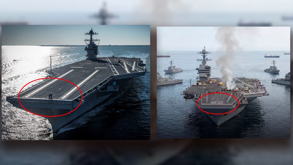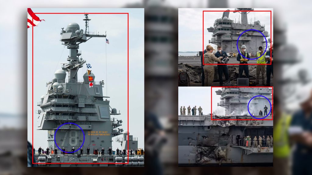 In addition, irregularities were found in the images. The aircraft carrier Gerald R. Ford appeared to have been hit, leaving a hole in the middle of the vessel. However, upon closer inspection, the ship in the image was marked with the number “25,” while the real USS Gerald R. Ford should bear the faint number “78” on the bow.