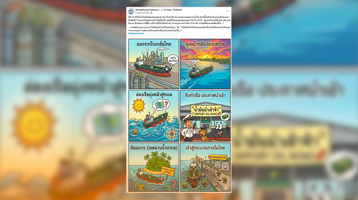 Thai PBS Verify found that the Facebook page under the name ‘Nattaphong Tiabkeaw’ shared an image of oil transport along with the following caption: