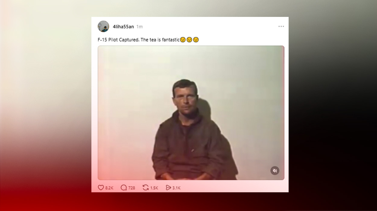 The post gained traction, with more than 414,000 views, 8,200 likes, 1,500 reposts, 3,100 shares and 728 comments. It was circulated on social media while the U.S. was trying to rescue a pilot shot down in Iran. Most users believed the clip to be real, although some argued that it was an old video.