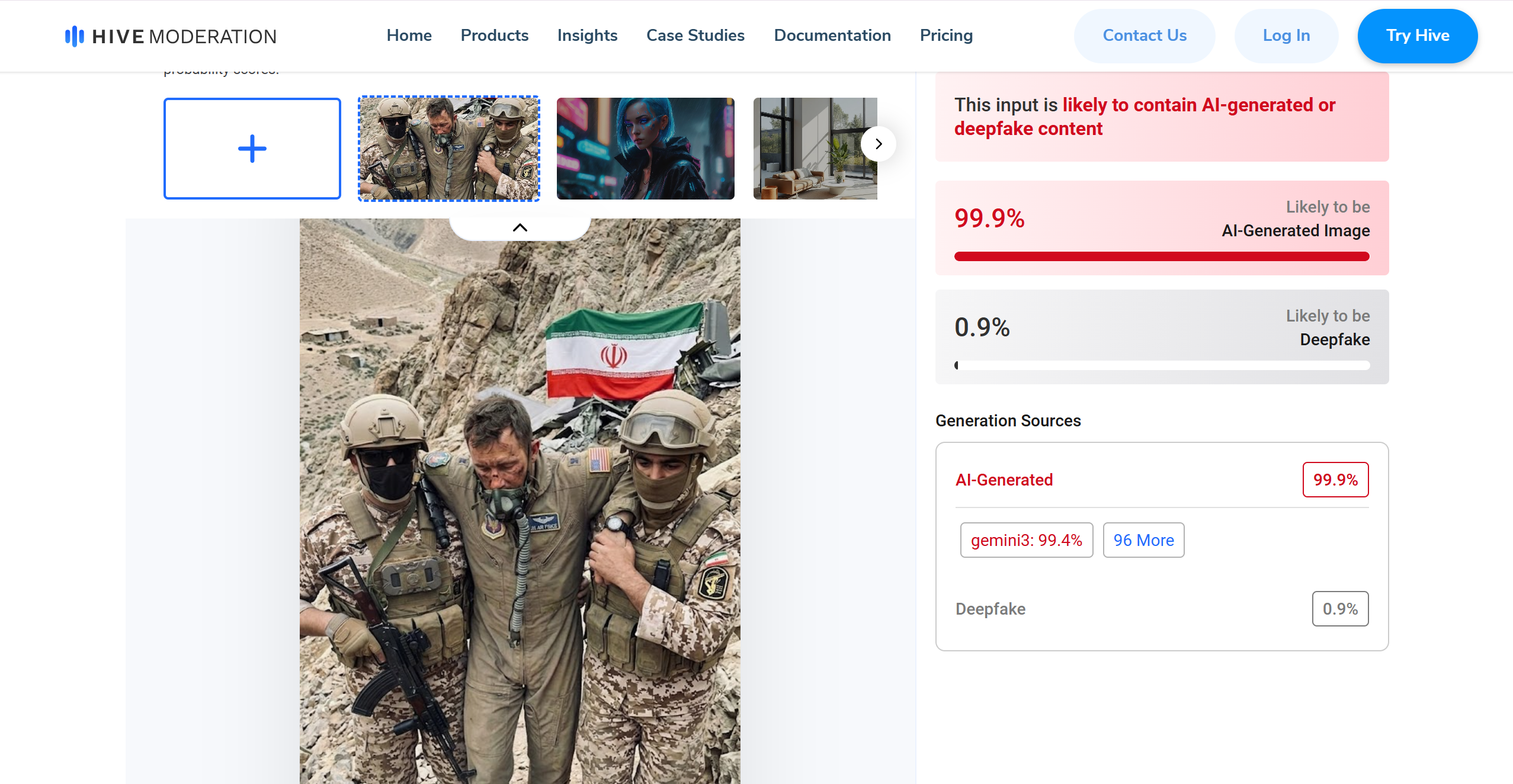 The team further analyzed the image on Hive Moderation. The results showed that there was a 99-percent likelihood that the image was AI- generated, with an estimated 0.9-percent probability that it may be a deepfake.