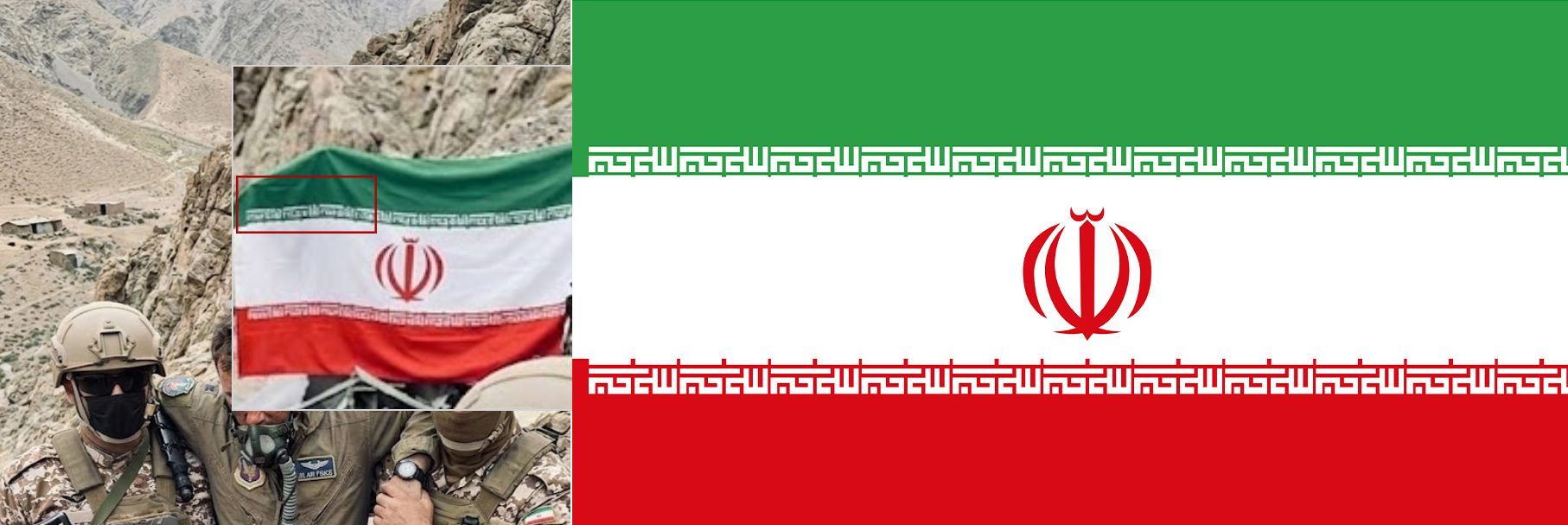 A comparison between the Iranian flag shown in the image and Iran’s actual national flag.