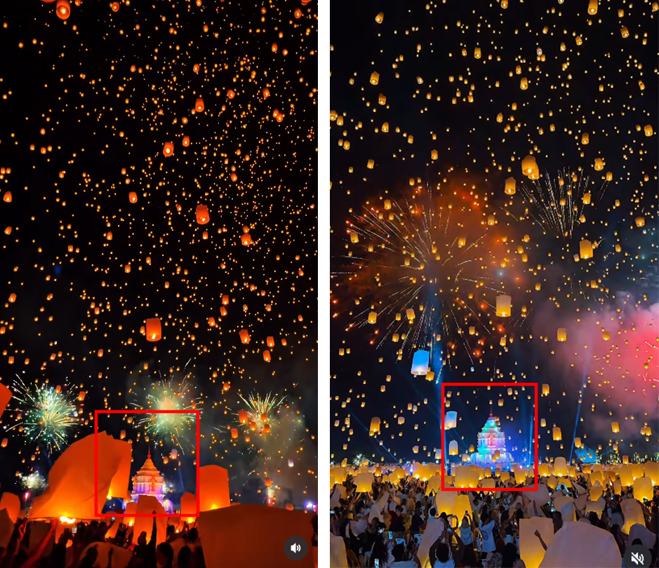 Verification found a clip of “sky lanterns” from an event held during the Yi Peng festival in Chiang Mai. The post-Loy Krathong night atmosphere was so beautiful that many social media users questioned whether the video was real or created with AI. The clip has received more than 3,000 likes and over 1,000 shares.