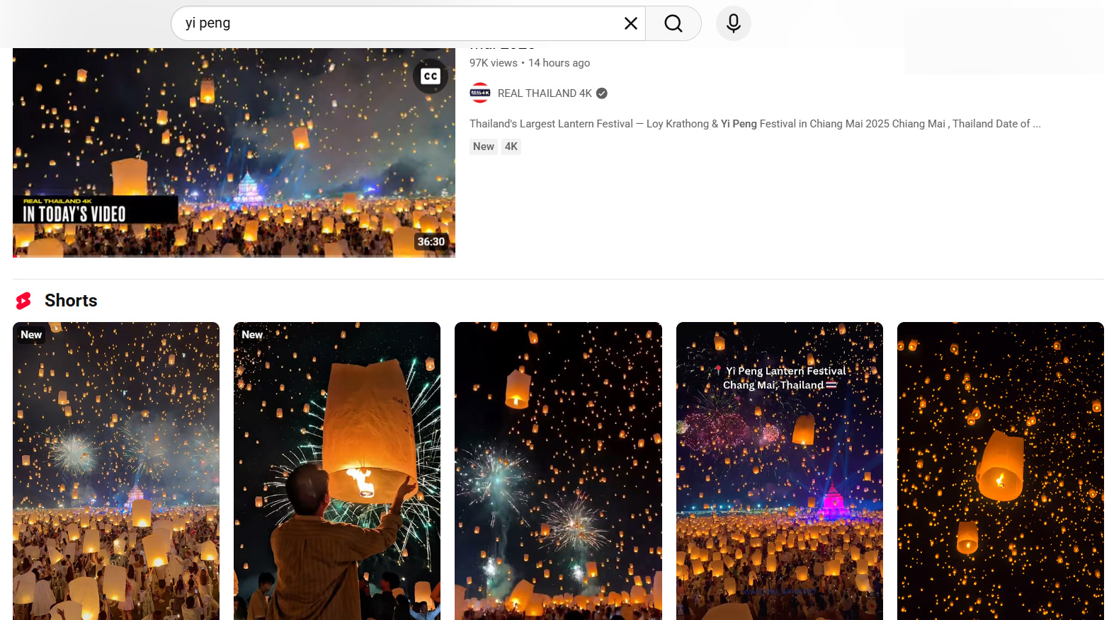 When searching for the term “Yi Peng” on YouTube, similar clips with matching environments can be found. (Source: YouTube channel “REAL THAILAND 4K”)