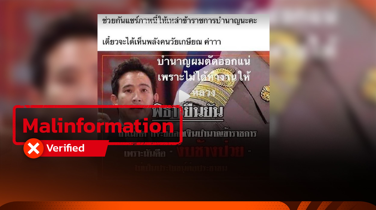 Thai PBS Verify found that the news about Pita Limjaroenrat allegedly cutting civil servant pensions had already been discussed back in May 2022, when the Move Forward Party was still in opposition during the government of Gen. Prayut Chan‑o‑cha. Now, however, as the country prepares for a new election, the issue has resurfaced on social media.