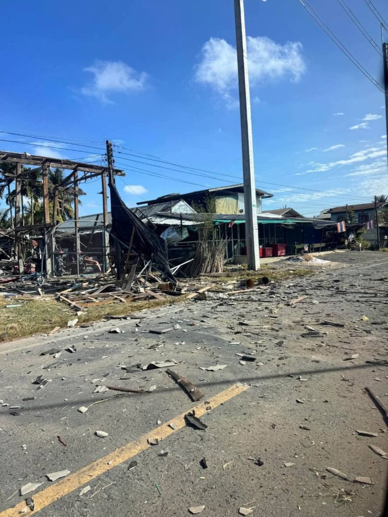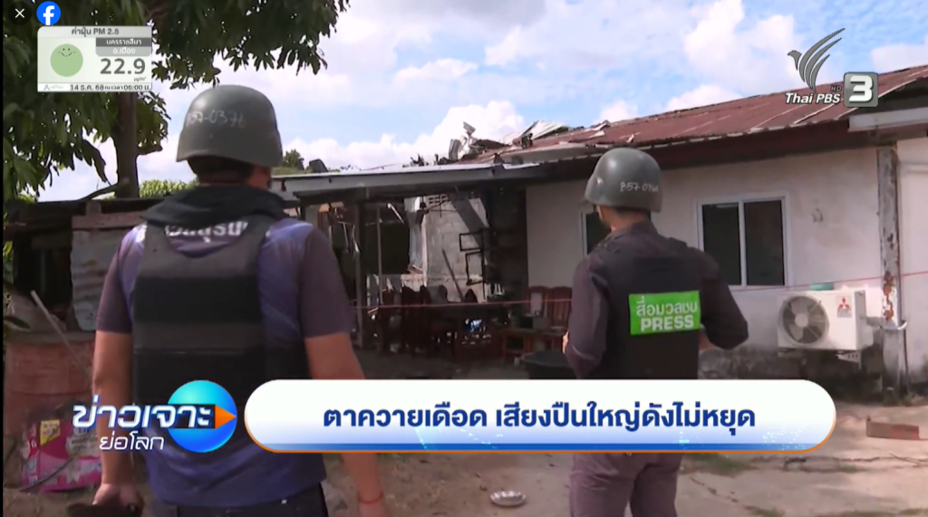 Furthermore, matching photographic and video evidence from on-site reporting by the Thai PBS News team, The Reporters, and international media such as Al Jazeera—covering the damage, the injured, and the situation during the incident—confirms that the attack genuinely occurred in a civilian area.