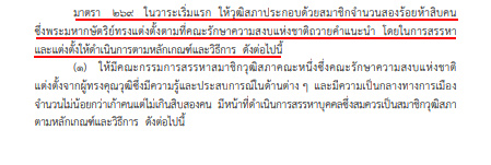 “During the initial period, the Senate shall consist of two hundred and fifty members appointed by the King upon the advice of the National Council for Peace and Order. Selection and appointment shall conform to the following rules and procedures…”
