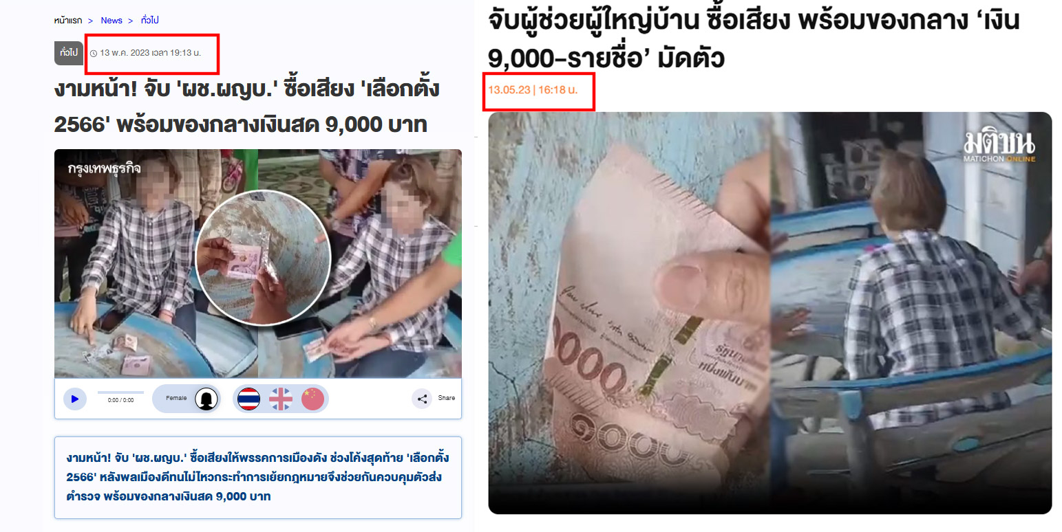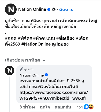 On the same day, the Nation website released a follow-up report, noting that the Phichit Provincial Election Commission clarified the vote-buying arrest clip. It stated that while the event did occur in Phichit Province, it was an incident from 2023 and is not a current event.