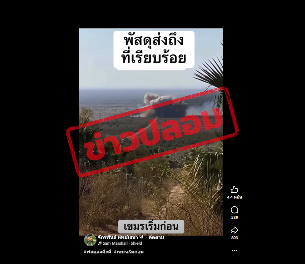 Thai PBS Verify has investigated a video post uploaded by Facebook user ‘Jakrapun Thipsena (จักรพันธ์ ทิพย์เสนา),’ which depicts Cambodian military BM-21 rocket launchers being subjected to a Thai airstrike. The post was accompanied with hashtags ‘#PackageDelivered’ and ‘#CambodiaStartedIt.’ This post was published on December 21, 2025.
