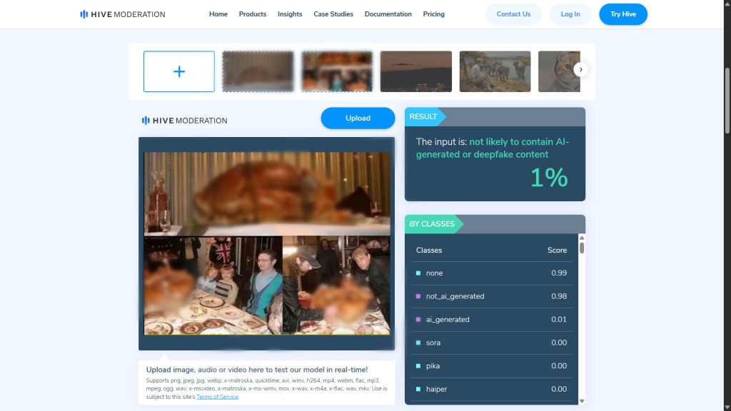 Thai PBS Verify utilized Hive Moderation, an image detection tool. The analysis revealed that there was only a 1% probability that AI generated these images. This suggests that the photos are, in fact, authentic.